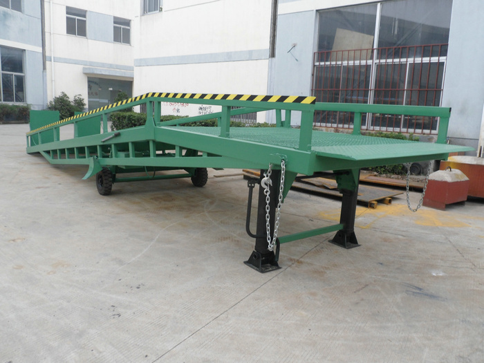 移動式液壓登車橋是與叉車配合使用的貨物裝 卸專用輔助設(shè)備。有了它,叉車能直接從地面駛?cè)肫囓噹麅?nèi)部進(jìn)行 批量裝卸作業(yè)。產(chǎn)品采用人工液壓動力,不需接動力電源。只需單人操作,即可實現(xiàn)貨物的安全快速裝卸。